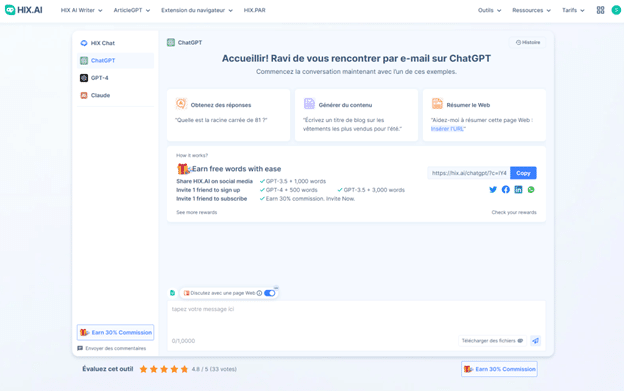 Utiliser la plateforme HIX.AI pour interagir avec chatgpt en français ou toute autre langue prise en charge est un processus simple.